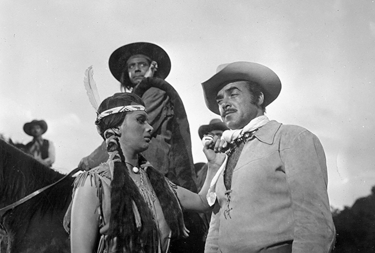 | Elenco: | Rafael Bertrand ("Puños de Roca"); Olivia Michel (Flor de Pradera); Alfonso Mejía (Oso Despierto); Pedro de Aguillón (Coyote Loco); Quintín Bulnes (Zurdo) |